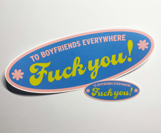 Boyfriends Sticker & Car Bumper Sticker: "To Boyfriends Everywhere F*ck You"