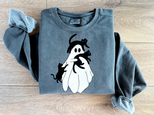 Halloween Ghost Cat Comfort Colors Sweatshirt