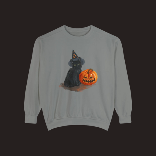 Halloween Witchy Cat Comfort Colors Sweatshirt