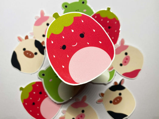 Squishmallows (Cow, pink cow, frog, strawberry) Stickers